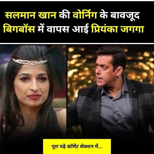 सलमान खान की वोर्निग के बावजूद बिगबॉस में वापस आई प्रियंका जगगा।
