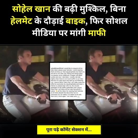 सोहेल खान की बढ़ी मुश्किल ,बिना हेलमेट के दौड़ाई बाइक, फिर सोशल मीडिया पर मांगी माफी।