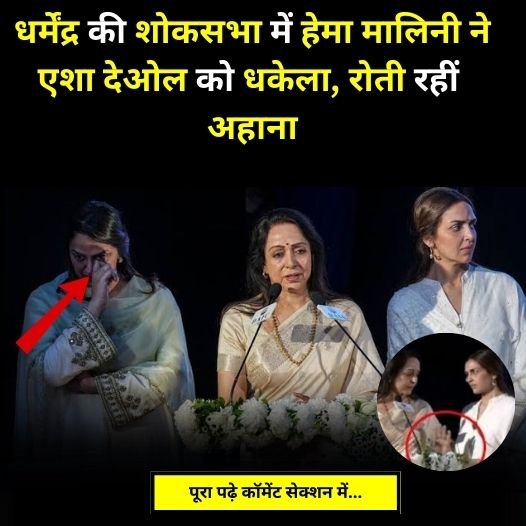 धर्मेंद्र की शोकसभा में हेमा मालिनी ने एशा देओल को धकेला, रोती रहीं अहाना।