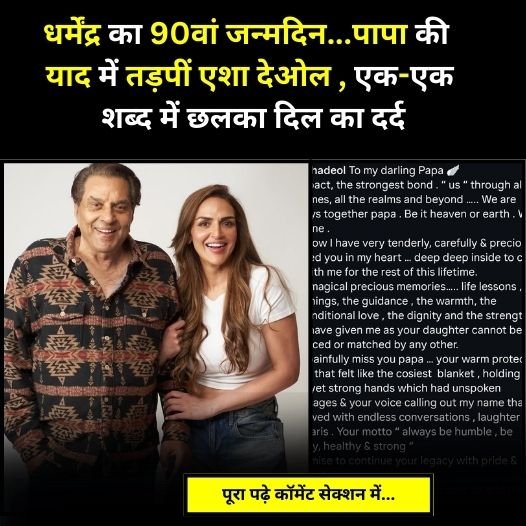 धर्मेंद्र के जन्मदिन पर इमोशनल हुईं हेमा मालिनी, पति के लिए लिखा प्यार भरा ‘ख़त’।