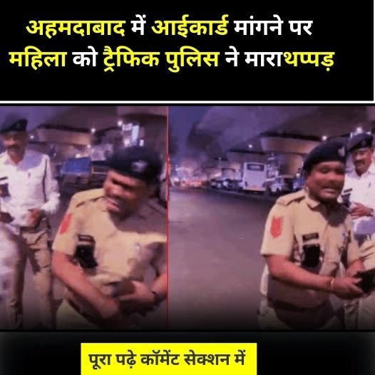 अहमदाबाद में आईकार्ड मांगने पर महिला को ट्रैफिक पुलिस ने मारा थप्पड़।