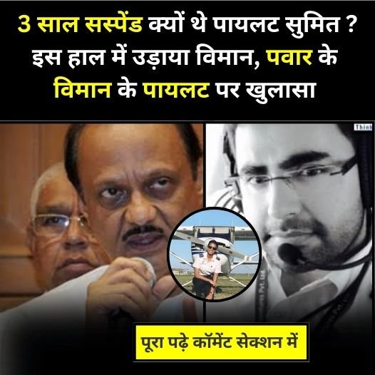 महाराष्ट्र के डिप्टी सीएम अजीत पवार के विमान हादसे के बाद कई राज परत दर परत खुल रही हैं। दरअसल जिस पायलट के हाथों विमान की कमान थी सुमित कपूर अब उनके ट्रैक रिकॉर्ड की जानकारी संदेहात्मक प्रतीत हो रही है। सुमित कपूर 3 साल तक के लिए सस्पेंडेड थे, और सस्पेंशन का कारण था फ्लाई से पहले अल्कोहल कंजम्पशन। महाराष्ट्र के डिप्टी सीएम और मजबूत जमीनी नेता अजीत पवार को हम खो चुके हैं। अजीत पवार जिस प्लेन में सवार थे, वह हो गया, और अजीत पवार समेत पांच लोगों की मौत हो गई। इस प्लेन की कमान संभाल रहे पायलट सुमित कपूर को लेकर अब बड़ा खुलासा हुआ है।