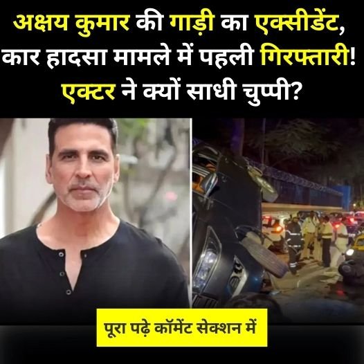 अक्षय कुमार कार हादसा मामले में पहली गिरफ्तारी। एक्टर की गाड़ी और ऑटो में हुई थी जबरदस्त भिड़ंत। हादसे में ड्राइवर गंभीर रूप से घायल। मर्सिडीज़ कार चालक की लापरवाही से हुआ भयंकर एक्सीडेंट। सोशल मीडिया पर घूम रहा सिर्फ एक सवाल। खिलाड़ी कुमार ने क्यों साध रखी है चुप्पी? मुंबई की सड़कों पर तब हायतौबा मच गई जब बॉलीवुड एक्टर अक्षय कुमार के काफिले की एक गाड़ी 19 जनवरी की रात एक सड़क हादसे का शिकार हो गई थी।