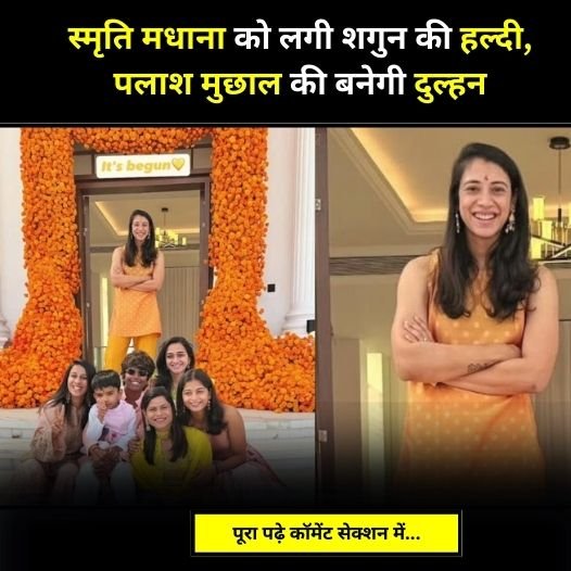स्मृति मधाना को लगी शगुन की हल्दी,पलाश मुछाल की बनेगी दुल्हन।