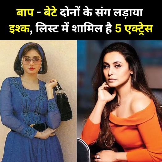 रानी मुखर्जी रानी मुखर्जी ने भी बाप बेटे के साथ पर्दे पर जमकर रोमांस किया है दरअसल रानी ने अमिताभ बच्चन के साथ फिल्म ब्लैक में सीन दिया था वहीं बंटी और बबली में अभिषेक बच्चन के साथ रानी रोमांस कर चुकी हैं डिंपल कपाड़िया धर्मेंद्र और सनी दौर के साथ काम करने वाली एक्ट्रेस की लिस्ट में डिंपल कपाड़िया का नाम भी शामिल है फिल्म बटवारा और शहजादा में डिंपल ने धर्मेंद्र के साथ जमकर रोमांस किया है वहीं उनके बेटे सनी देओल के साथ भी उन्होंने नरसिंहा गोला और अर्जुन जैसी फिल्मों में इश्क लड़ाया है.
