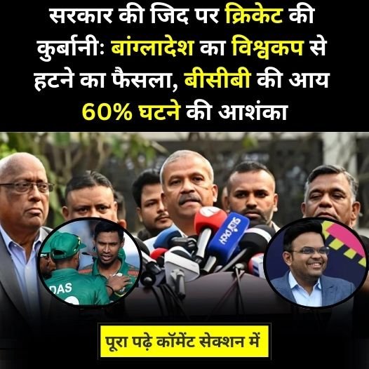 बांग्लादेश क्रिकेट बोर्ड (BCB) ने एक ऐतिहासिक फैसला लेते हुए आगामी विश्वकप से हटने का ऐलान कर दिया। इसका कारण बताया जा रहा है सरकार की जिद, जिसने क्रिकेट गतिविधियों पर पाबंदी लगा दी। इस कदम से BCB की आय में 60% तक की कमी आने की आशंका है, जो बांग्लादेश क्रिकेट के भविष्य के लिए बड़ा झटका साबित हो सकता है।सरकार की जिद और क्रिकेट का बलिदानबांग्लादेश में चल रही राजनीतिक अस्थिरता के बीच सरकार ने क्रिकेट को ‘राष्ट्रीय सुरक्षा’ का हवाला देकर रोक दिया।
