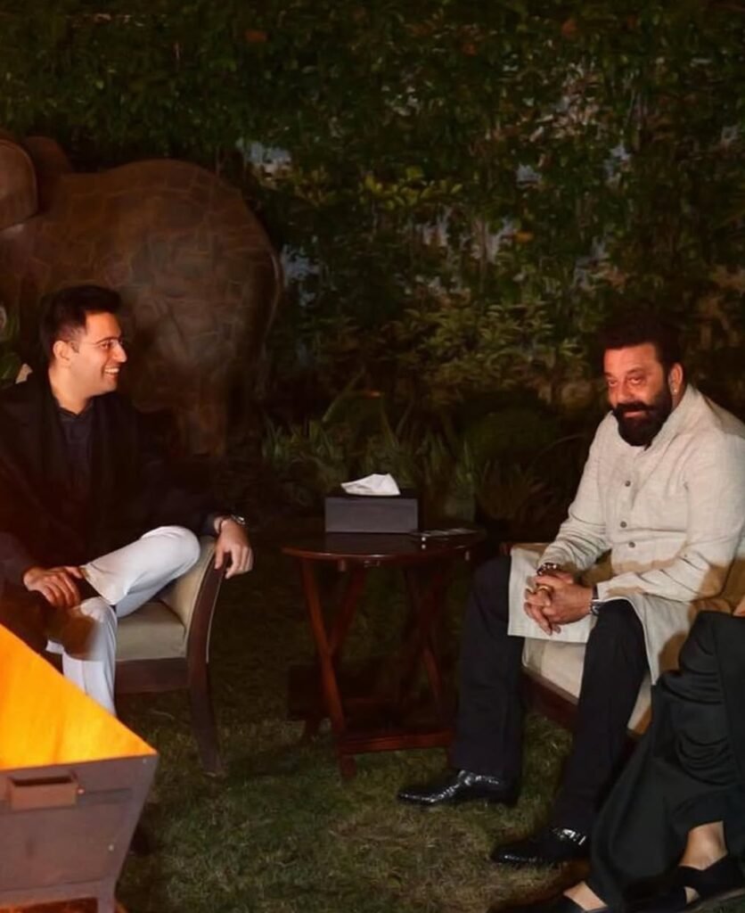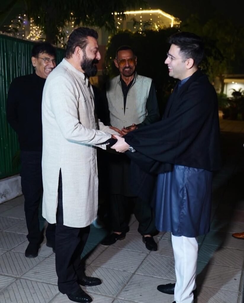 पहली तस्वीर में वह और संजय दत्त कैमरे के सामने मुस्कुराते हुए पोछ दे रहे हैं। फोटो में संजय ने राघव के कंधे पर हाथ रखा हुआ है। वहीं दूसरी तस्वीर में राघव चड्ढा संजय दत्त का हाथ थामकर उनका स्वागत करते दिख रहे हैं। तीसरी फोटो में दोनों साथ में बैठकर आपस में बातें करते दिख रहे हैं। इस दौरान उनके चेहरे पर मुस्कान साफ नजर आ रही है।
