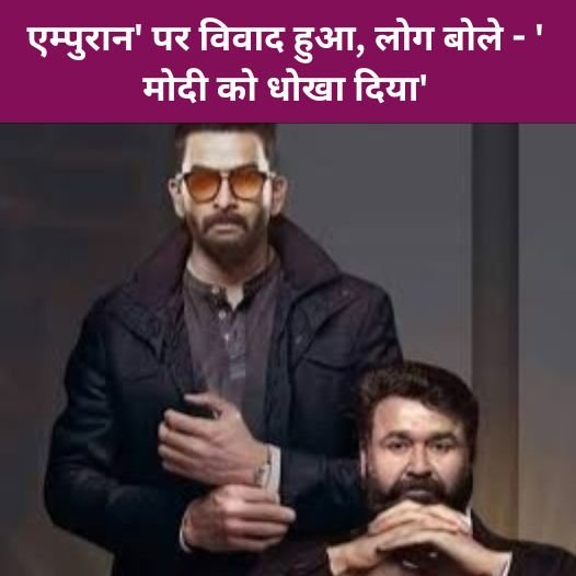 पूरा मामला आखिर है क्या दरअसल 27 मार्च को एलटू एमपन नाम की मलयालम फिल्म रिलीज हुई यह 2019 में आई लुसिफर का सीक्वल है लीड रोल में मोहनलाल थे दोनों फिल्मों को पृथ्वीराज सुकुमारन ने ही डायरेक्ट किया था पृथ्वीराज ने सीक्वल में एक्टिंग भी की है बहरहाल फिल्म के कुछ सींस पर विवाद हो गया है लोग सोशल मीडिया पर फिल्म को कर रहे हैं इसे एंटी हिंदू और एंटी इंडिया कह रहे हैं फिल्म के राइटर मुरली गोपी भी इस विवाद पर बात कर रहे हैं.