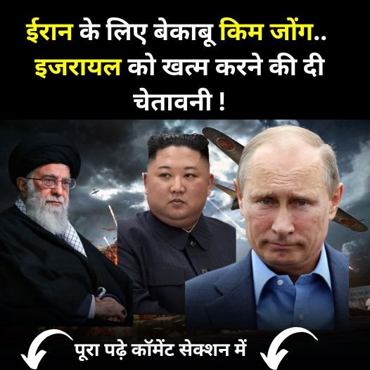 जी ईरान के लिए बेकाबू किम जोंग इजराइल को दी धमकी।एक से इजराइल को खत्म करने की धमकी। ट्रंप के अंदाज में ट्रंप को किम का जवाब। ईरान को 100सदी समर्थन का दावा। ईरान अमेरिका अब नया मोड़ ले चुका है। अमेरिका और इजराइल के हमलों में ईरान के सुप्रीम लीडर अयातुल्लाह अली खामिने की के बाद अब उत्तर कोरिया के तानाशाह किम जोंगुन मैदान में कूद पड़े हैं। दुनिया की नजरें पयोंगयांग पर टिकी हैं। क्या यह तीसरे विश्व की शुरुआत है? किम ने पिछले दो दिनों में अपने नए का टेस्ट किया। क्रूज ने दागी और दुनिया को दिखा दिया कि उनका बटन तैयार है। नॉर्थ कोरियाई फॉरेन मिनिस्ट्री ने अमेरिका इजराइल को और अवैध बताया।