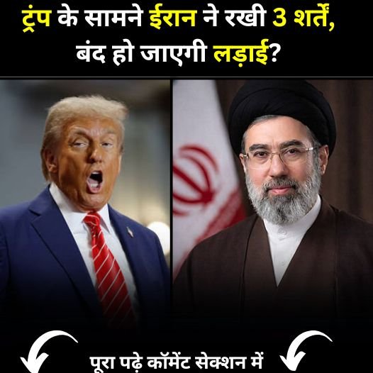 तो अब तक अमेरिका ईरान के सामने शर्त रख रहा था। लेकिन अब देखिए ईरान ने इस 12वें दिन अपनी शर्त रख दी है। क्योंकि जिस तरह से फैलता चला जा रहा है और उसका असर पूरी दुनिया पर दिखाई दे रहा है। अब ट्रंप चाहते हैं कि समाप्त हो जाए। बातचीत का रास्ता निकले। लेकिन ईरान ने कह दिया वो जब चाहेगा तभी बातचीत करेगा। और उसने जो शर्तें रखी है वो क्या शर्त है आपको बताते हैं जो ईरान की तरफ से सामने आई है या ईरान चाहता है कि इस पर अमेरिका रिस्पांस दे।