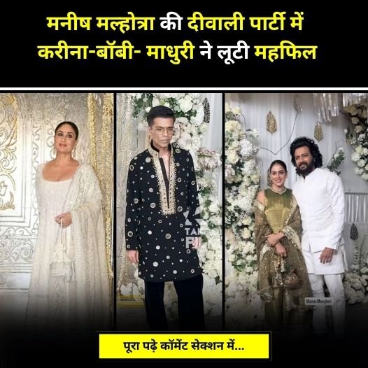 मनीष मल्होत्रा की दिवाली पार्टी में लगा सितारों का मेला। करीना अनन्या से लेकर माधुरी दीक्षित हेमा मालिनी रॉयल लुक में आए नजर। बॉलीवुड के हैंडसम हंस सिद्धार्थ आयुष्मान इब्राहिम ने भी बिखेरा जलवा। नीता अंबानी ने बहू राधिका संग ली जबरदस्त एंट्री। बॉलीवुड में दिवाली की धूम और रौनक अभी से ही देखने को मिल रही है।