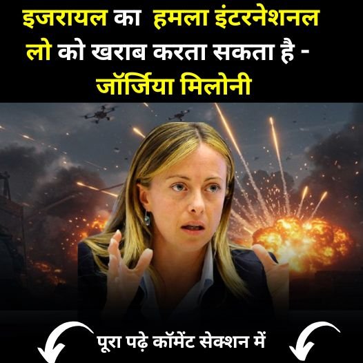 आज यूएस ईरान कॉन्फ्लिक्ट का 12वां दिन है। मीडिया रिपोर्ट्स के मुताबिक यह हमले दोनों तरफ से जारी है। इसी बीच इटालियन प्राइम मिनिस्टर जॉर्जिया मिलोनी का एक बड़ा बयान सामने आया है। उन्होंने कहा है कि ये जो इजराइल के जो है वो इंटरनेशनल लॉ को वायलेट कर सकता है। उसका उल्लंघन करता है। तो आपको बता दें कि जॉर्जिया मेलोनी जो है वो यूएस प्रेसिडेंट डोनल्ड ट्रंप की एक क्लोज एलय है। एक करीबी सहयोगी है।
