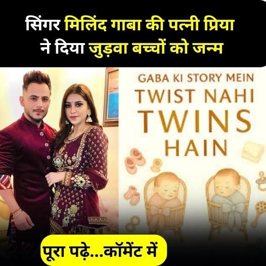 सिंगर मिलिंद गाबा के घर गूंजी दो बच्चो की किलकारी, प्रिया बेनीवाल ने दिया जुड़वा बच्चों को जन्म।