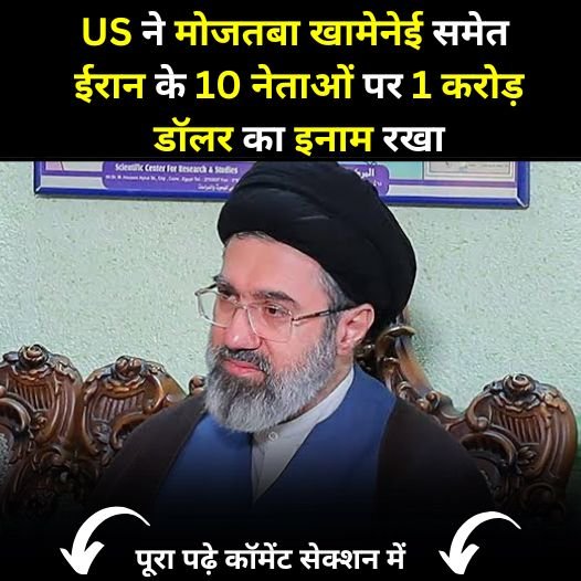 अमेरिका ने ईरान के नए सुप्रीम लीडर मुस्तबा खामीने पर भारी इनाम घोषित किया है। अमेरिकी विदेश विभाग ने आयतुल्लाह अली खामीन के बेटे मुस्तफा खामीन समेत ईरान के 10 सीनियर नेताओं और अधिकारियों की एक लिस्ट जारी की। इनकी जानकारी देने पर $1 करोड़ यानी लगभग 92.6 करोड़ का इनाम मिलेगा।
