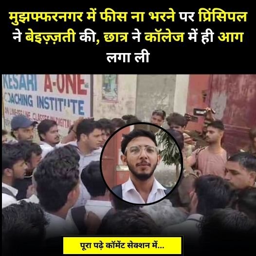 मुझफ्फरनगर में फीस ना भरने पर प्रिंसिपल ने बेइज़्ज़ती की, छात्र ने कॉलेज में ही आग लगा ली।