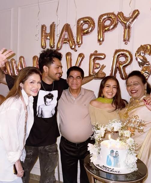 सोनू कक्कड़ टोनी कक्कड़ और नेहा कक्कड़ नेहा के पति रोहनप्रीत सिंह भी इस मौके पर जश्न मनाते दिखाई दिए नेहा ने सोशल मीडिया पर पार्टी की कुछ झलक दिखाई है जिसमें देखा जा सकता है कि बैकग्राउंड में दीवार पर हैप्पी एनिवर्सरी लिखा हुआ था और टेबल पर केक रखा हुआ था जिसमें उनके पेरेंट्स की फोटो भी बनी हुई थी इस पोस्ट के कैप्शन में नेहा कक्कड़ ने लिखा क्या रात थी इसी का जवाब देते हुए सोनू कक्कड़ ने लिखा वास्तव में और टोनी कक्कड़ ने पोस्ट के नीचे हामी भरते हुए हाथ इमोजीज़ बनाए कक्कड़ फैमिली का यह रीयनियन फैंस के लिए किसी जश्न से कम नहीं है अब उम्मीद की जा रही है यह म्यूजिक फैमिली जल्द ही फिर से मिलकर किसी एक नए प्रोजेक्ट पर काम करेगी.