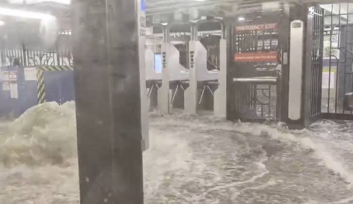 जन सैलाब के ये सारे अमेरिका से आए हैं। अमेरिका के सबसे बड़े शहर न्यूयॉर्क और इसी तरह यूएस के अन्य बड़े शहरों की यह तस्वीरें हैं। बाढ़ जैसी स्थिति बनी हुई है। सड़कों पर पानी काबू से बाहर है। कुछ गाड़ियां सड़क पार करने में जूझती दिखाई दे रही हैं। सबसे डराने वाला नजारा न्यूयॉर्क के मैनहटन मेट्रो स्टेशन से आया।