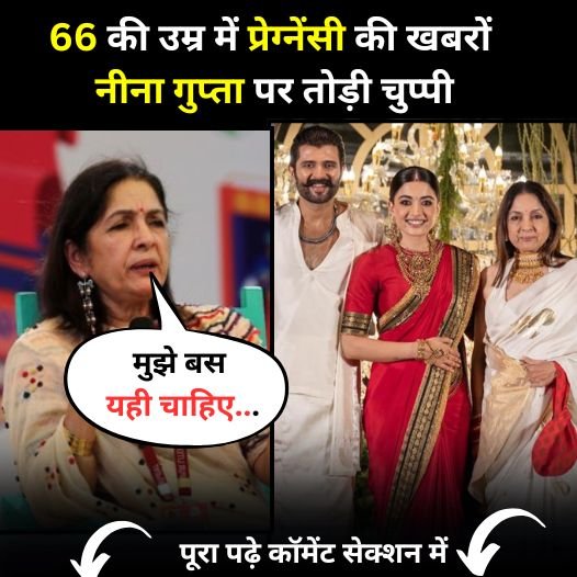 नीना गुप्ता हमेशा अपने स्टाइल और अपने पर्सनल लाइफ को लेकर चर्चा में रहती हैं। हाल ही में 66 साल की उम्र में नीना गुप्ता की प्रेगनेंसी की खबरें खूब वायरल हुई। सोशल मीडिया पर हर जगह यही खबरें आ रही थी कि नीना गुप्ता प्रेग्नेंट है। वो भी 66 साल की उम्र में। यह पूरा मामला रश्मिका मंदाना के रिसेप्शन पार्टी से जुड़ा हुआ है। आखिरकार इस पर एक्ट्रेस ने खुद अपनी बात रखी है और प्रेगनेंसी की खबरों का सच बताया है।