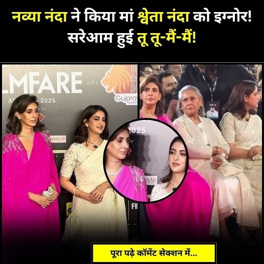 मां बेटी का एक वीडियो बहुत ज्यादा वायरल हो रहा है जिसे देखकर फैंस नव्या और श्वेता को खूब खरी-खोटी सुना रहे हैं। पूरा मामला आपको विस्तार से बताते हैं। दरअसल मां बेटी का यह वीडियो पुराना है लेकिन चर्चा नई है। जैसा कि आप देख सकते हैं श्वेता और नव्या दोनों ने एक साथ फिल्मफेयर अवार्ड फंक्शन में एंट्री ली। जहां श्वेता पिंक कलर के खूबसूरत आउटफिट में नजर आ रही हैं, वहीं नव्या नवेली नंदा वाइट साड़ी में किसी बॉलीवुड एक्ट्रेस से कम नहीं दिख रही हैं। लेकिन जैसे ही फैंस ने नव्या का बर्ताव देखा, उनका मन उदास हो गया।