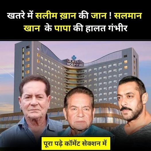 खतरे में सलीम खान की जान, हालत हुई पहले से गंभीर। धीरे-धीरे बिगड़ रही सलमान खान के पापा की तबीयत। लीलावती हॉस्पिटल के सूत्रों ने दिया हेल्थ अपडेट। सांस लेने में दिक्कत के चलते फिर बढ़ी खान परिवार की टेंशन। इस वक्त सलमान खान का पूरा परिवार लाइफ के सबसे मुश्किल दौर से गुजर रहा है।