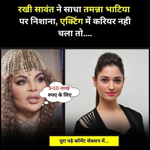 राखी सावंत तमन्ना भाटिया पर हुई गुस्सा। इस टाइप के सॉन्ग हमें सूट करते हैं। बॉलीवुड की सेल्फ प्रोक्लेम्ड ओजी आइटम गर्ल राखी सावंत ने एक्ट्रेस तमन्ना भाटिया पर निशाना साधते हुए उनके आइटम नंबर को लेकर गुस्सा जताया। हिंदी रश के इंटरव्यू में राखी ने कहा, “मुझे तमन्ना से कोई प्रॉब्लम नहीं है।