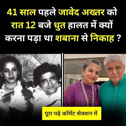 जावेद शबाना को देख उनका हर चाहने वाला यही कहता है कि इस जोड़ी को किसी की नजर ना लगे। लेकिन क्या आप जानते हैं कि 41 साल पहले ऐसा नहीं था। तब ना यह रिश्ता आसान था ना हालात मेहरबान थे। जावेद शादीशुदा और दो बच्चों के पिता थे। की लत लग चुकी थी और शबान आजमी की मां इस रिश्ते के सख्त खिलाफ थी। शबाना आजमी को घर तोड़ने वाली महिला कहा जा रहा था और फिर एक दिन ऐसा आया जब अचानक आधी रात में 12:00 बजे जावेद और शबाना के निकाह के लिए काजी की तलाश की जाने लगी। में जावेद ने शबान आजमी के साथ निकाह किया। क्या है यह किस्सा?