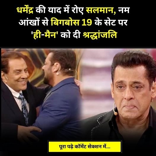 इसी बीच एक पल ऐसा आया जिसमें सभी की आंखें नम हो गई। बता दें धर्मेंद्र के निधन के बाद वीकेंड का वार में भी सलमान खान ने बॉलीवुड के हीमैन धर्मेंद्र को श्रद्धांजलि दी थी और अब ग्रैंड फिनाले में भी धर्मेंद्र को एक यादगार श्रद्धांजलि दी गई है। इसी दौरान अपने पिता समान धर्मेंद्र को याद करते हुए सलमान खान की आंखें नम हो गई। उनके चेहरे पर धर्मेंद्र के जाने का गम साफ दिखाई दे रहा था। उनके आंसू रोके नहीं रुक रहे थे जिसका वीडियो अब सोशल मीडिया पर वायरल हो रहा है।