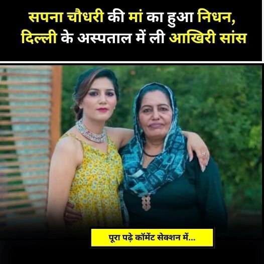 सपना चौधरी की मां का हुआ निधन। दिल्ली के अस्पताल में नीलम चौधरी ने ली आखिरी सांस। त्यौहार के मौसम में परिवार में छाया मातम। मां की निधन से हरियाणवी डांसर पर टूटा दुखों का पहाड़। पिता की मौत के बाद मां ने भी यूं अचानक कहा अलविदा। हरियाणवी स्टेट डांसर से लेकर बड़े पर्दे पर अपनी पहचान बनाने वाली सपना चौधरी पर दुखों का पहाड़ टूट गया है।