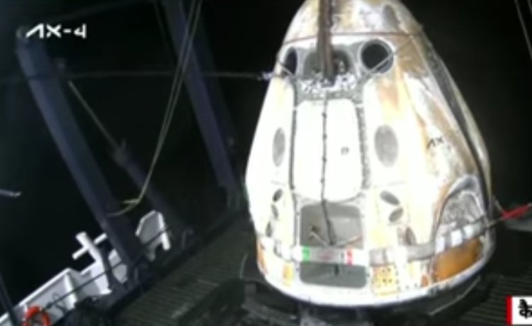 यह देखिए। यह देखिए आप यह कैप्सूल ड्रैगन कैप्सूल पानी से बाहर आ चुका है। अभी थोड़ा सा हवा में आपको नजर आ रहा है और नीचे उसके रखने की वो जगह वो प्लेटफार्म आपको दिख रहा है और बस उससे इस वक्त चंद फीट की दूरी पर ही बचा है। अब यह मुश्किल से दो-चार फीट की दूरी होगी और अब धीरे-धीरे कर इसको नीचे लाया जाएगा और उस पर फिट कर दिया जाएगा। वो जो प्लेटफार्म पहले से ही बनाकर रखा गया था इस ड्रैगन कैप्सूल को इस शिप पर रखने के लिए। यह देखिए आप नीचे आ रहा है। वो पानी भी गिर रहा है। जो पानी उसकी सतह पर आ गया होगा वो पानी भी नीचे गिरता हुआ आप देख रहे हैं क्योंकि वो सीधा हो रहा है। अभी टेढ़ा था और अब जैसे-जैसे सीधा हो रहा है। अब आकर पूरी तरीके से ये फिट होता हुआ नजर आ रहा है सर और इसी तरह वो दरवाजा भी दिख रहा है इसका। सर। बिल्कुल सही बात है और ये बड़ी बारीकी के साथ इसका प्लेसमेंट देखिए हो रहा है ताकि जरा सा कुछ भी सेंटीमीटर इधर से उधर ना हो और एकदम ये अपने पोजीशन पर सही ढंग से विराजमान हो जाए। अब हैच ओपनिंग का अभी एक सामने सिग्नल आया था।
