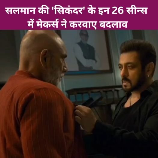 सलमान खान के सिकंदर को रिलीज़ होने में अब 4 दिन से भी कम का समय बचा हुआ है बोर्ड ने फिल्म को 21 मार्च को ही 13 प्लस का सर्टिफिकेट दे दिया था मगर सर्टिफिकेट मिलने के बाद मेकर्स ने अपनी तरफ से फिल्म में फिर से कुछ बदलाव किए रिपोर्ट्स है कि मेकर्स की इस काटछाट के बाद फिल्म की लंबाई करीब 14 मिनट 28 सेकंड कम हो गई है।