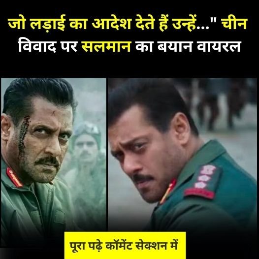 सलमान खान की अगली फिल्म बैटल ऑफ गलवान साल 2020 के गलवान वैली क्लैश पर आधारित है। हाल ही में चीनी मीडिया ने फिल्म को झूठा करार देते हुए इस पर फैक्ट से छेड़छाड़ करने के आरोप लगाएं। मगर यह सलमान की पहली मूवी नहीं जो इंडो चाइना पर केंद्रित हो। इससे पहले कबीर खान के डायरेक्शन में बनी ट्यूबलाइट की कहानी भी 1962 के भारत चीन युद्ध के इर्द-गिर्द बुनी गई थी। तब सलमान ने युद्ध के लिए सरकार और प्रशासन को जिम्मेदार ठहराया था।