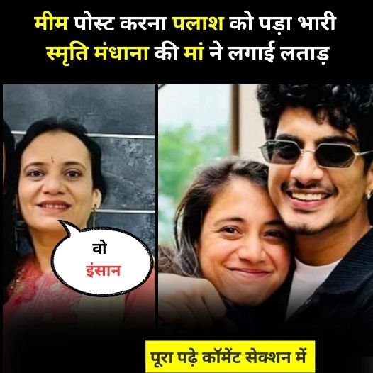पलाश मुशल एक वेल नोन म्यूजिक कंपोजर और सिंगर हैं और वह पहले भी कई कंट्रोवर्सीज में रह चुके हैं। लेकिन इस बार मामला अलग था क्योंकि ट्रोलिंग डायरेक्ट पलाश पर नहीं थी बल्कि स्मृति मंधाना की मां की तरफ से इनडायरेक्ट रिस्पांस माना गया। और जब क्रिकेटर की मॉम मीम रिपोज कर दे तो पब्लिक उसे इमोशनल स्टेटमेंट मान लेती है। अब सवाल यह है कि क्या सिर्फ यह एक मजाक था या फिर मंधाना फैमिली का एक हिडन मैसेज।