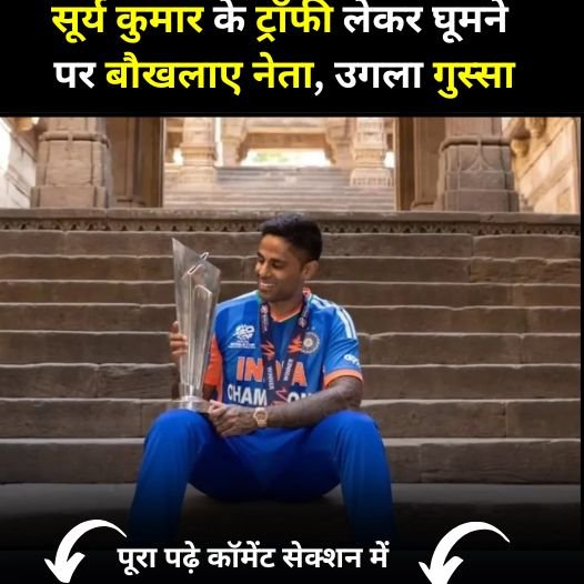 T20 वर्ल्ड कप जीतने के बाद कैप्टन सूर्य कुमार यादव की काफी तारीफ हो रही है। लेकिन अब एक पॉलिटिशियन है जिन्होंने सूर्य कुमार यादव की क्लास लगाई है और कहा है कि संभल जाओ यह ट्रॉफी तुम्हारे घर की नहीं है। यह ट्रॉफी पूरे भारत की है जो क्रिकेट के लिए बहुत इमोशंस रखता है। आखिर सूर्य कुमार यादव ने ऐसा क्या किया है कि यह पॉलिटिशियन सूर्य कुमार यादव पर भड़कते नजर आ रहे हैं। चलिए मैं आपको बताती हूं।