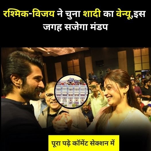 कहा जा रहा है कि इस पैलेस का सिर्फ एक रात का किराया ही आम इंसान की जेब ढीली कर सकता है। लेकिन विजय रश्मिका के लिए यह खर्च नहीं बल्कि अपने सपनों को जीने का जरिया है। उदयपुर में होने वाली यह शादी सिर्फ दो दिलों का मिलन नहीं बल्कि प्यार, शाही ठाट और सपनों की एक शानदार कहानी है। जिसे देखने के लिए फैंस के निगाहें अब उसी शुभ दिन पर टिकी हुई हैं। सूत्रों के मुताबिक रश्मिका और विजय 26 फरवरी 2026 को शादी के बंधन में बंधेंगे। दोनों ने शादी के लिए राजस्थान का खूबसूरत शहर उदयपुर तय किया है। खास बात यह है कि कपल ने इस शादी को भी बेहद निजी और सादगी भरे अंदाज में करने का फैसला लिया है। शादी के लिए उन्होंने एक शाही हेरिटेज पैलेस चुना है। जहां सिर्फ परिवार और बेहद करीबी दोस्त ही शामिल होंगे।
